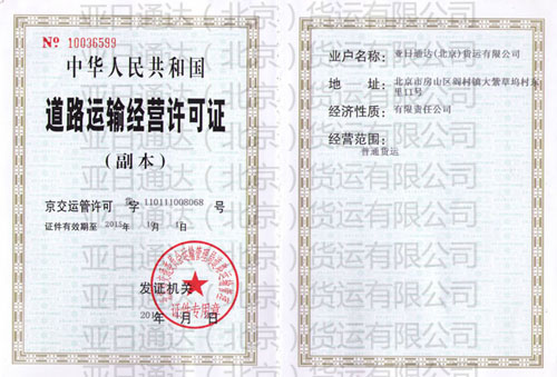 亞日通達(dá)(北京)貨運(yùn)有限公司